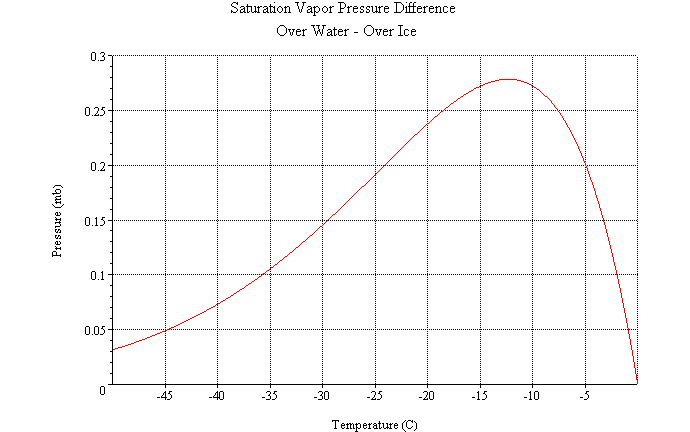 Difference between saturation vapor pressure over water $e_s^{water}$ and over ice $e_s^{ice}$.
