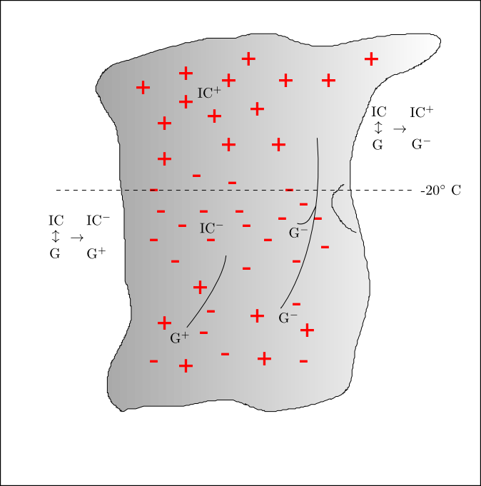 - entrainment of the net negatively charge environmental parcels form much of the cloud's downdraft, therefore creating the negatively charged lower portion of the cloud